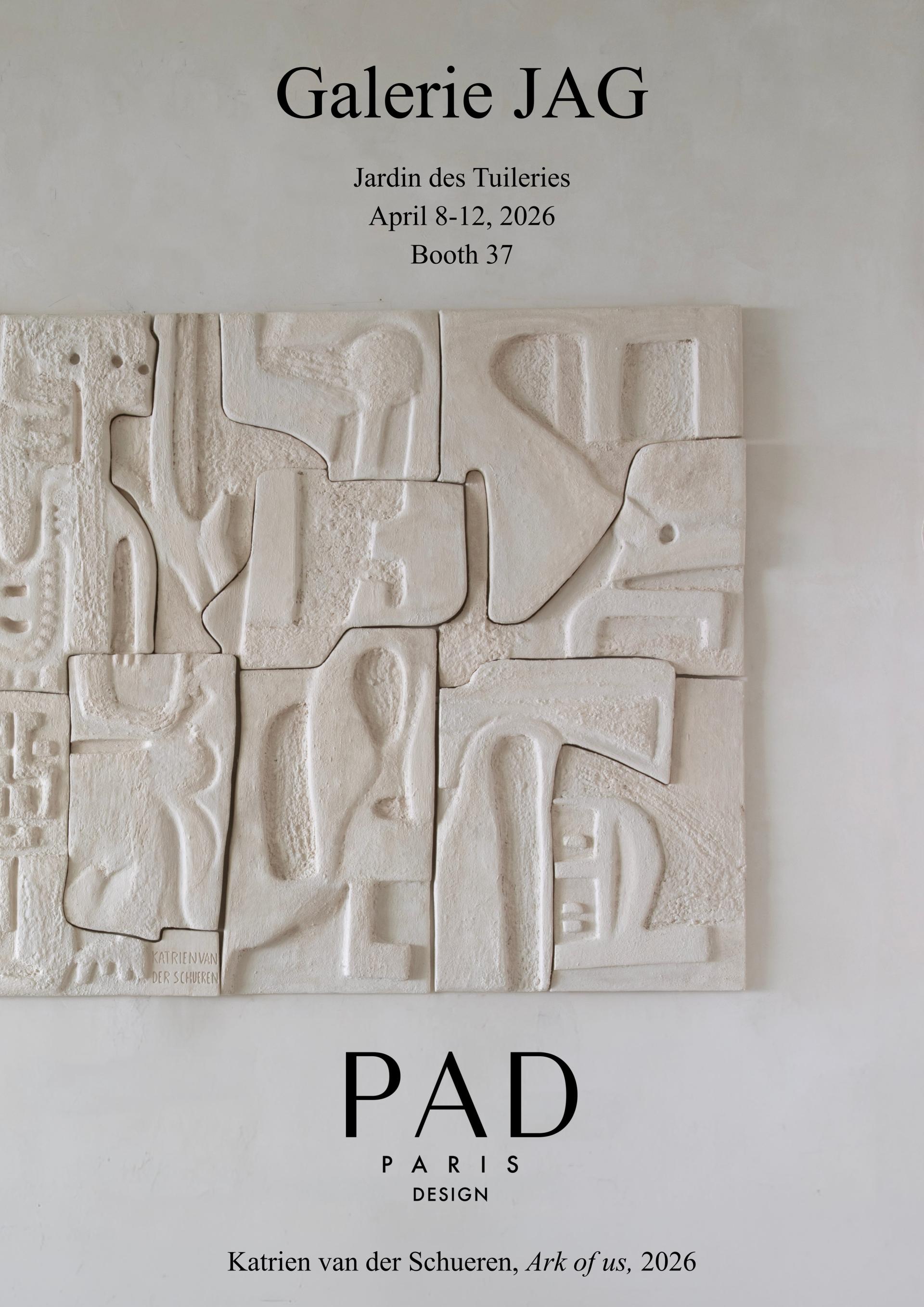 Du 8 au 12 avril 2026, l'artiste sculptrice Katrien Van Der Schueren est représentée par la Galerie Jag à l'occasion de PAD Paris, au Jardin des Tuileries. À cette occasion, elle dévoile un nouveau corpus d'œuvres inédites articulé autour de deux concepts muraux ambitieux : ''The Ark of Us'' et ''Sculpted Story''.