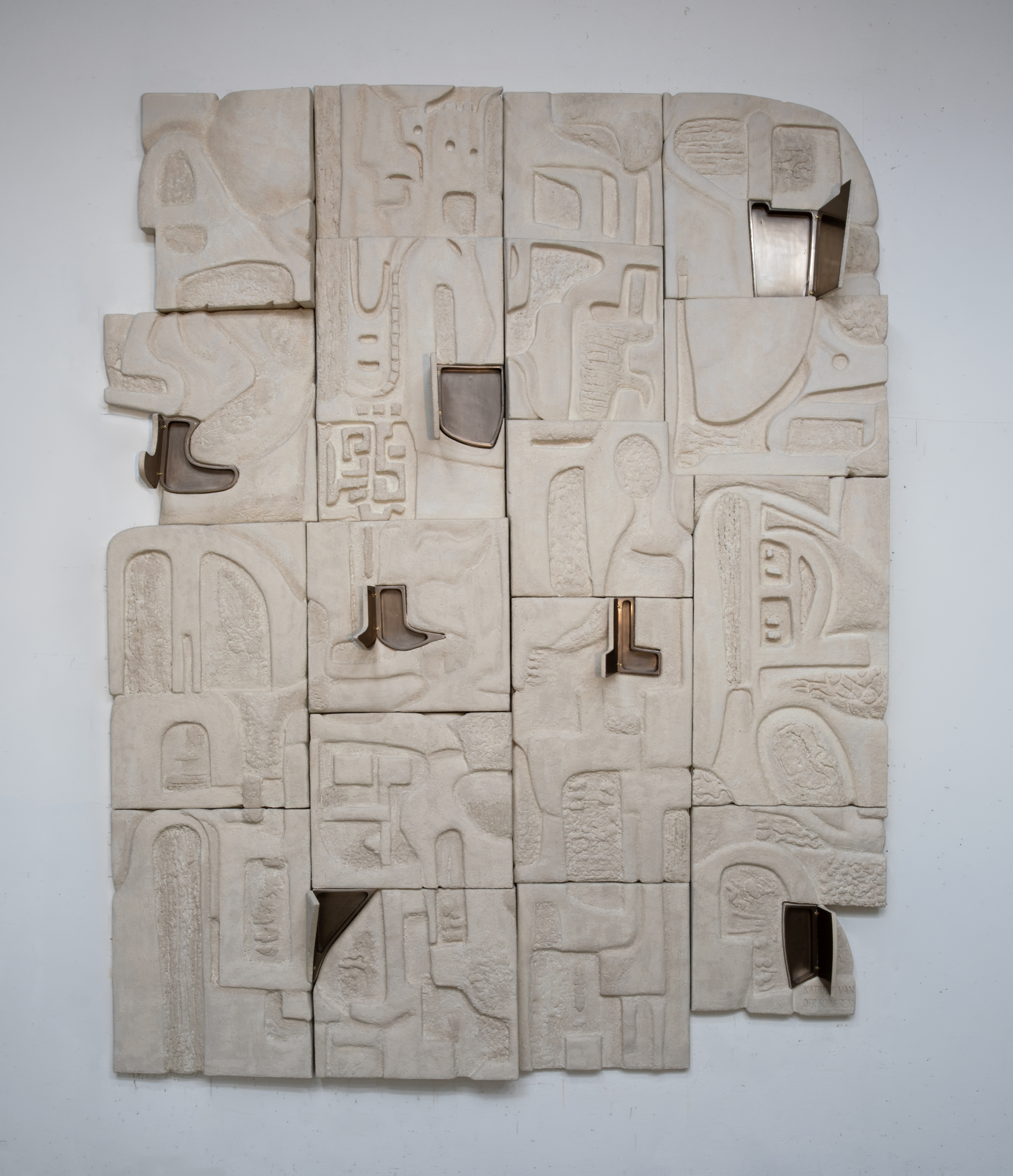 Katrien Van Der Schrueren est une artiste sculptrice basée à Los Angeles dont la pratique transforme des matériaux bruts et industriels — bois, métal, plâtre et bio-résine — en formes poétiques et féminines. À travers la sculpture, le luminaire et les fresques murales de grande échelle, elle associe précision géométrique et douceur tactile pour créer des œuvres in situ à la fois monumentales et profondément expressives.