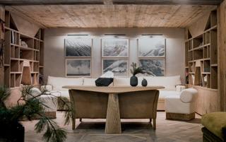This comprehensive renovation transformed the 32-room property into a warm yet refined destination, where the principle of extending material life guided every design choice. Inspired by the surrounding peaks and valleys, the palette draws from nature's hues, such as moss greens, earthy browns, soft creams, and rust tones, all brought to life through reclaimed local wood, mineral paints, local wools, and Belgian linens.