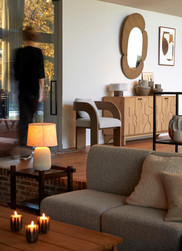 This new collection has inspired three key pieces, all crafted from solid wood. Swann, the modular corner sofa, plays with materials in an understated way. We like to think of it as the perfect match for the Olia coffee table, which is equally at home indoors or out. In the dining room, the Tribute chair features Danish paper cord weaving, for a result as comfortable as it is elegant.