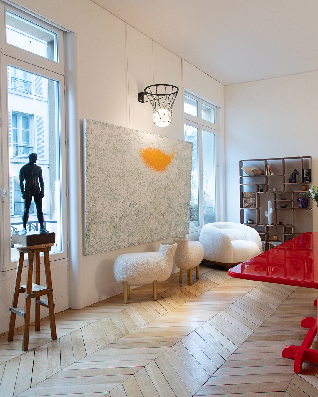 With Basketball, Franck Genser transforms an instantly recognizable form into a refined lighting object, blurring the line between functional design and sculptural expression. Mounted on the wall like a suspended moment, the lamp takes its cue from a classic basketball hoop, reinterpreted through Genser's precise, architectural language.