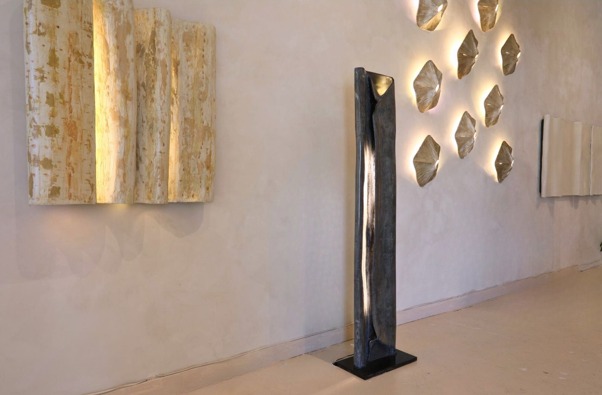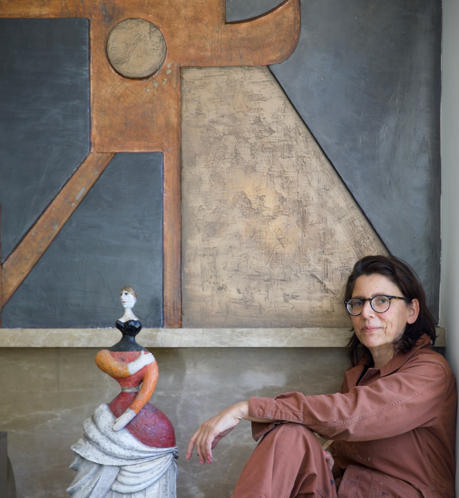 Katrien Van Der Schueren is a Los Angeles-based sculptural artist known for transforming rugged materials—like wood, metal, plaster, and bio-resin—into poetic, feminine forms. Her work spans sculpture, lighting, and large-scale murals, merging geometric precision with tactile softness to create site-specific pieces that are both monumental and deeply expressive.